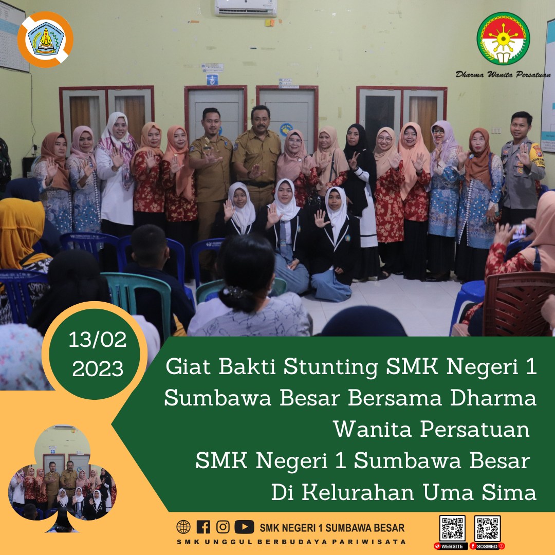 Sumbawa Besar, 13 Februari 2023 Hallo #SobatSMKANSA, Giat Bakti Stunting SMK Negeri 1 Sumbawa Besar Bersama Dharma Wanita Persatuan SMK Negeri 1 Sumbawa Besar Di Kelurahan Uma Sima. Sa-Ya Bisa Hebat dan Luar Biasa #BaktiStunting #DWPSMKANSA #KelurahanUmaSima