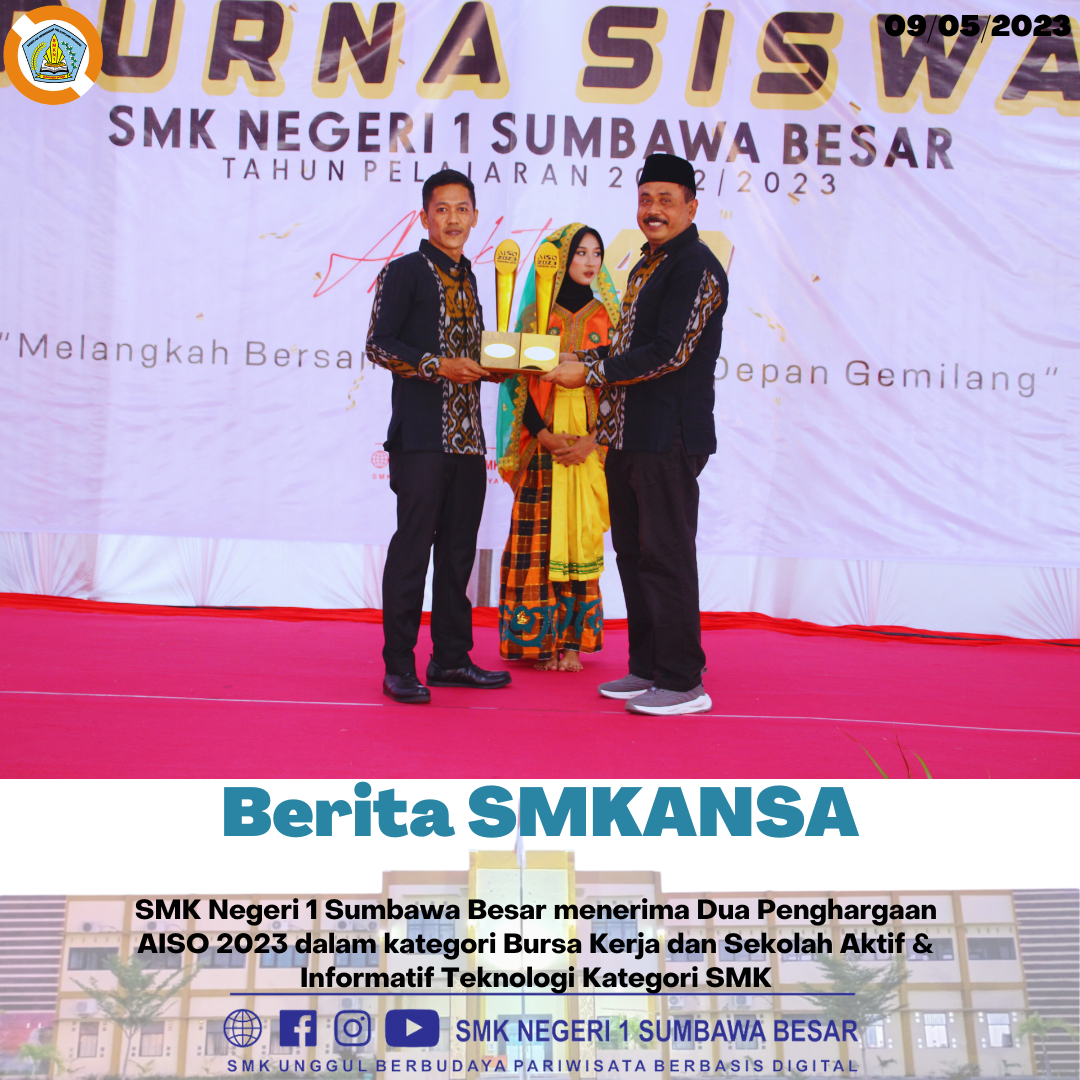 [BERITA SMKANSA] Malam Anugerah Istimewa Sekolah ( AISO ) Tahun 2023, Alhamdulillah SMKN 1 Sumbawa Besar berturut turut 2 Tahun mendapatkan AISO , malam ini mendapatkan 2 kategori Sekolah Aktif & Informasi Teknologi Jenjang SMK dan kategori Bursa Kerja SMK Terbaik. Selamat buat keluarga besar SMKN 1 Sumbawa. #SMKANSA #smkbisa #smkhebat #smkluarbiasa