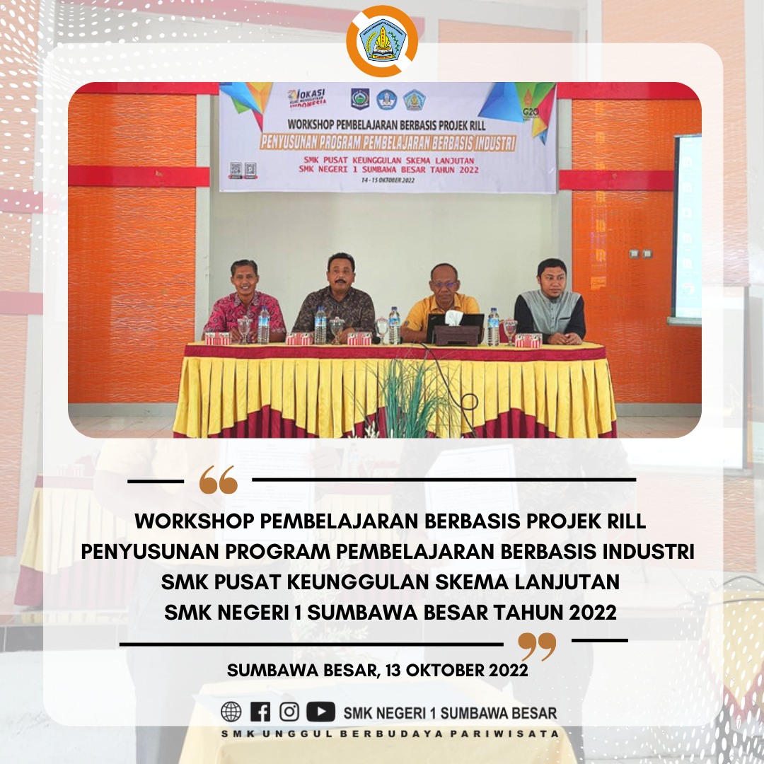 Kamis, 13 Oktober 2022 Hallo #SobatSMKANSA, HRM. Amanwa Resort, Bapak Ignasius Gawe menjadi Narasumber pada Kegiatan Workshop Pembelajaran Berbasis Projek Rill (Project Based Learning) yang dilaksanakan selama 2 hari di Aula Ai Mata Jitu yang di rangkaikan dengan penandatangan perjanjian kerja (PKS) bersama Amanwana Resort. Workshop ini dihadiri oleh 20 tenaga pendidik sebagai peserta. Adapun materi yang disampaikan oleh narasumber terkait dengan Projek Rill berbasis Industri sudah mulai diterapkan di SMK Negeri 1 Sumbawa Besar. Adapun Output yang dihasilkan adalah Vidio Pembelajaran Inovatif Karya Tenaga Pendidik yang sudah mulai diterapkan dalam proses pembelajaran. Semoga kerja sama ini SMK Negeri 1 Sumbawa dapat meningkatkan mutu Pendidikan di SMK Negeri 1 Sumbawa Besar. Sa-Ya Bisa Hebat dan Luar Biasa #BerbasisProjekRill #AmanwanaResort #SMKANSA