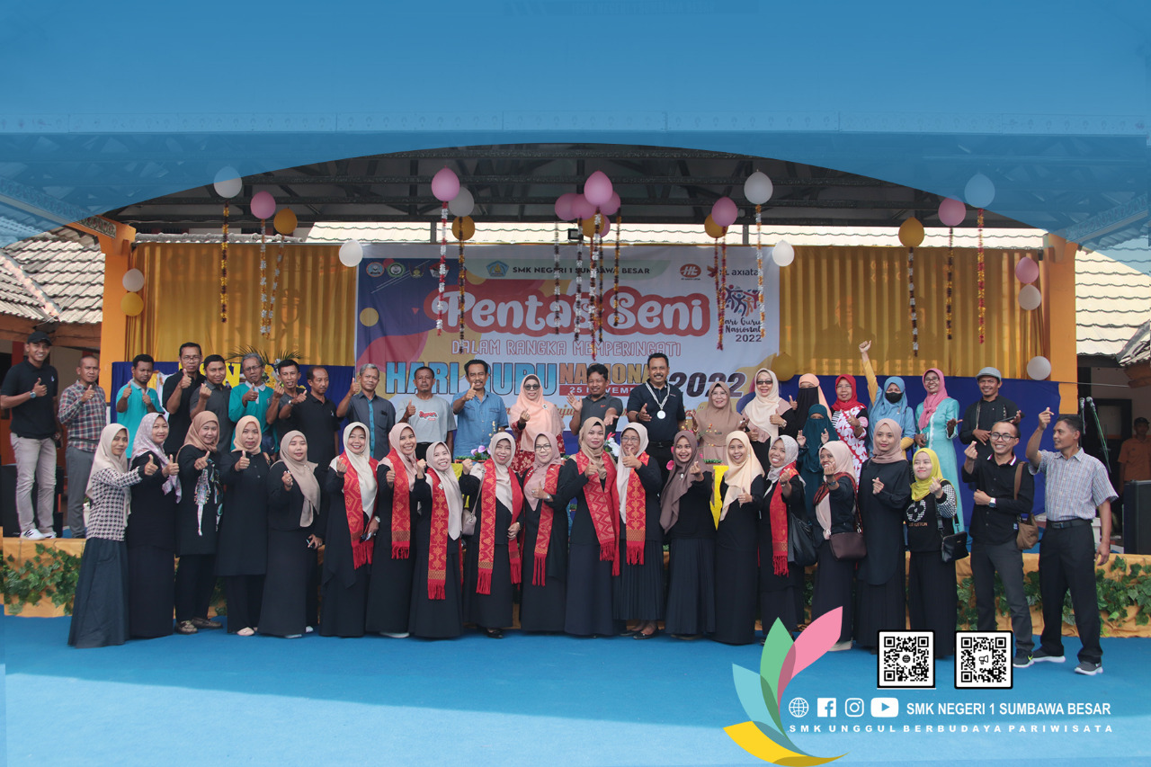Sabtu, 26 November 2022 Kegiatan Hari Guru Nasional Tahun 2022, SMKN 1 Sumbawa Besar mengadakan acara Pentas Seni yang diadakan Di Panggung Ekespresi SMKN 1 Sumbawa Besar, Terdapat 20 Pertunjukan yang disuguhkan oleh Siswa – Siswi SMKN 1 Sumbawa Besar, lalu diakhiri dengan penyerahan sumbangan terhadap korban bencana gempa cianjur dari warga SMKN 1 Sumbawa ke Kepala Cabang Dinas Dikbud (KCD) Sumbawa Bapak Fahrizal, S.Pd. M.Pd.