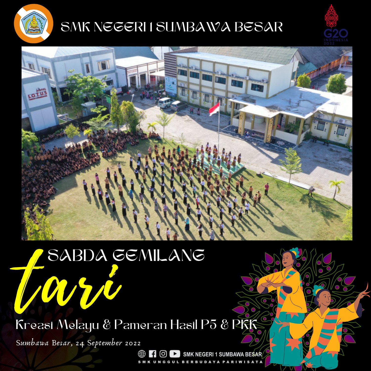 SABTU, 24 September 2022 Pada Kegiatan SABDA Minggu ke 3 Bulan September SMKN 1 Sumbawa Besar Mengadakan SABDA ( Sabtu Budaya ) dengan menampilkan Tari Kreasi Melayu dan Pameran Hasil dari P5 & PKK. Berikut Pemeran Siswa – siswi SMKN 1 Sumbawa Besar : Tarian sebagai ungkapan seni mulai hadir ketika orang menyadari pentingnya teknik atau keterampilan gerak. Sejak itu seseorang mulai mengatur gerak tubuhnya, hingga mulai ada tuntutan keteraturan dan bentuk gerak tubuh dalam sebuah tarian. Berdasarkan kebudayaan melayu, terdapat jenis tarian asli dan tarian yang sudah dipengaruhi oleh unsur-unsur modern. Meski begitu, tari melayu menjadi salah satu bukti sejarah perkembangan manusia dari setiap zaman. Rentak Tari Melayu Tarian Melayu juga mengenal istilah rentak, yaitu motif irama (musik) tertentu yang mendasari motif gerak tertentu. Melalui rentak suasana dan identitas tari Melayu dibangun. Rentak dalam tari Melayu antara lain Rentak Zapin, Rentak Joget, Rentak Ghazal, Rentak Melayu, Rentak Mak Inang, Rentak Nobat, dan sebagainya. Semua rentak tersebut masih dapat dibagi dalam tiga garis besar, yaitu rentak cepat, rentak sedang, dan rentak lambat. Dalam tari Melayu juga dibedakan gerak tari ideal untuk pria dan tari wanita. Menurut Mansur dalam jurnal yang sama, penari wanita sebaiknya menonjolkan sikap badan dan gerakan lemah lembut. Sedangkan penari pria dengan sikap badan dan gerakan yang gagah. Sumber : link Berikut Tari Kreasi Melayu oleh Siswa – siswi SMK Negeri 1 Sumbawa Besar