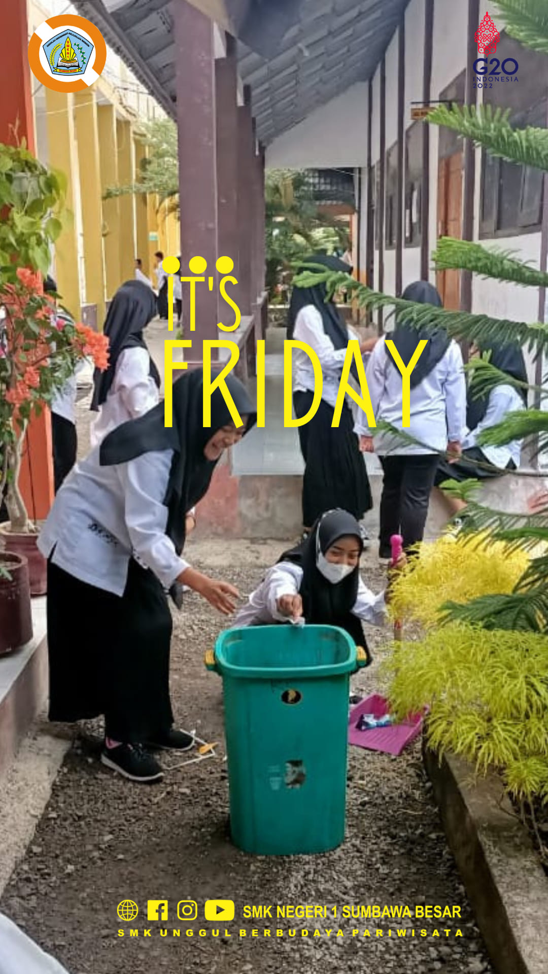 Hallo #SobatSMKANSA Kegiatan Jumat Bersih Sebagai Pembentukan Karakter Kebersihan lingkungan sekolah merupakan faktor pendukung yang sangat penting dalam menunjang proses Kegiatan Belajar Mengajar. Terciptanya suasana nyaman, bersih asri akan memberi dampak yang positif bagi warga sekolah. Budaya Jumat Bersih diharapkan dapat menjadi kebiasaan yang baik dan menyehatkan dengan berbagai manfaat diantaranya menumbuhkan cinta dan peduli terhadap lingkungan sekolah. Tujuan utama dari kegiatan Jumat bersih adalah menumbuhkan rasa memiliki di kalangan siswa akan pentingnya kebersihan lingkungan demi kesehatan. Perilaku hidup bersih sangat menentukan pola hidup sehat di lingkungan tempat belajar khususnya, karena lingkungan yang sehat dapat meningkatkan konsentrasi belajar yang lebih tinggi dan mendukung sikap belajar yang antusias, sehingga mempengaruhi produktifitas siswa dan guru dalam kegiatan belajar mengajar. Kegiatan Jum’at bersih dilaksanakan oleh seluruh warga SMK Negeri 1 Sumbawa Besar. Sumbawa Besar, 23 September 2022 Sa-Ya Bisa Hebat dan Luar Biasa #JumatBersih #SMKANSA