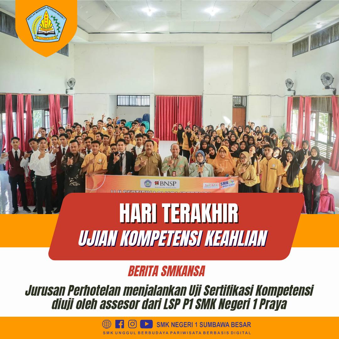 Selasa, 25 Februari 2025 Jurusan perhotelan menjalankan Uji Sertifikasi Kompetensi yang diuji langsung oleh para assesor dari LSP P1 SMK Negeri 1 Praya. Pada uji kompetensi ini ada 3 Skema sertifikasi okupasi yang didapatkan siswa Perhotelan terdiri dari Room Attendant, Guest Service Agent dan Waiter Server. Siswa SMKANSA hebat !!! #smkn1sumbawabesar #smkansa #ukk #lspp1 #dikbudntb