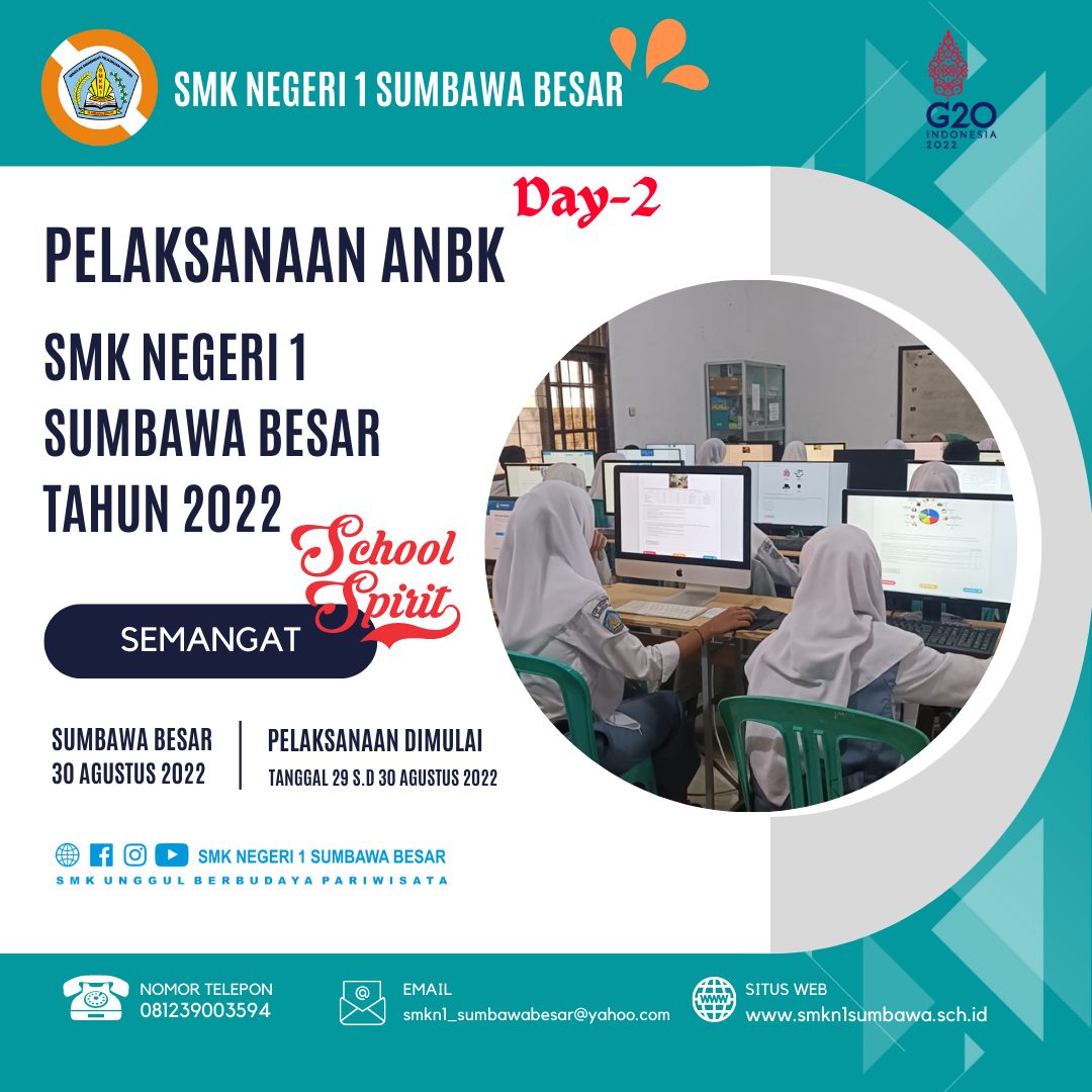 Hallo #SobatSMKANSA, Day-Two Pelaksanaan ANBK SMK Negeri 1 Sumbawa Besar Tahun 2022. Dilaksanakan Dari Tanggal 29 s.d 30 Agustus 2022. Sumbawa Besar, 30 Agustus 2022 Sa-Ya Bisa Hebat dan Luar Biasa #ANBK #SMKNegeri1SumbawaBesar #SemangatANKB #SchoolSpirit