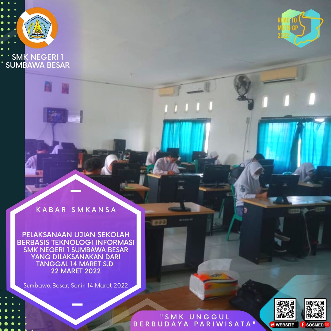 Hallo #SobatSMKANSA,Hari ini Pelaksanaan Ujian Sekolah Berbasis Teknologi InformasiSMK Negeri 1 Sumbawa Besar yang dilaksanakan dari tanggal 14 Maret s.d 22 Maret 2022.”Siap Menyukseskan Ujian Sekolah Berbasis Teknologi Informasi Dengan Jujur dan Berkualitas”#Semangat Peserta DidikHebat Sumbawa Besar, 14 Maret 2022SMK BisaHebat dan Luar Biasa#UjianSekolah#SMKANSA