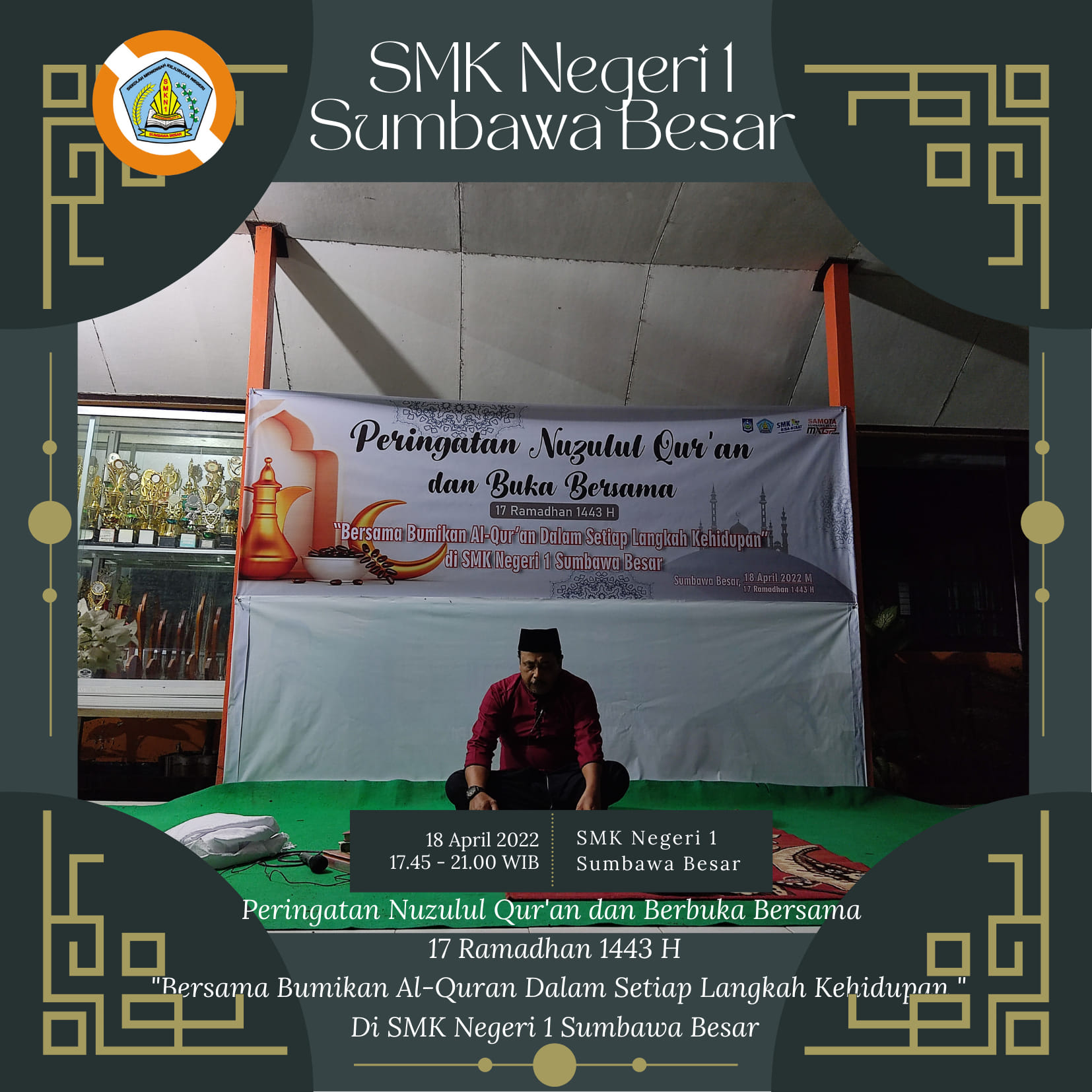 Peringatan Nuzulul Qur’an dan Buka Bersama 17 Ramadhan 1443 H “Bersama Bumikan Al-Quran Dalam Setiap Langkah Kehidupan Di SMK Negeri 1 Sumbawa Besar” Sumbawa Besar, 18 April 2022